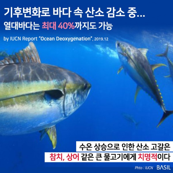 기후변화로 바다속 산소 감소 중, 열대바다는 최대 40%까지 감소 ICUN "해양 탈산소화(Ocean Deoxygenation)" 보고서에서 밝혀